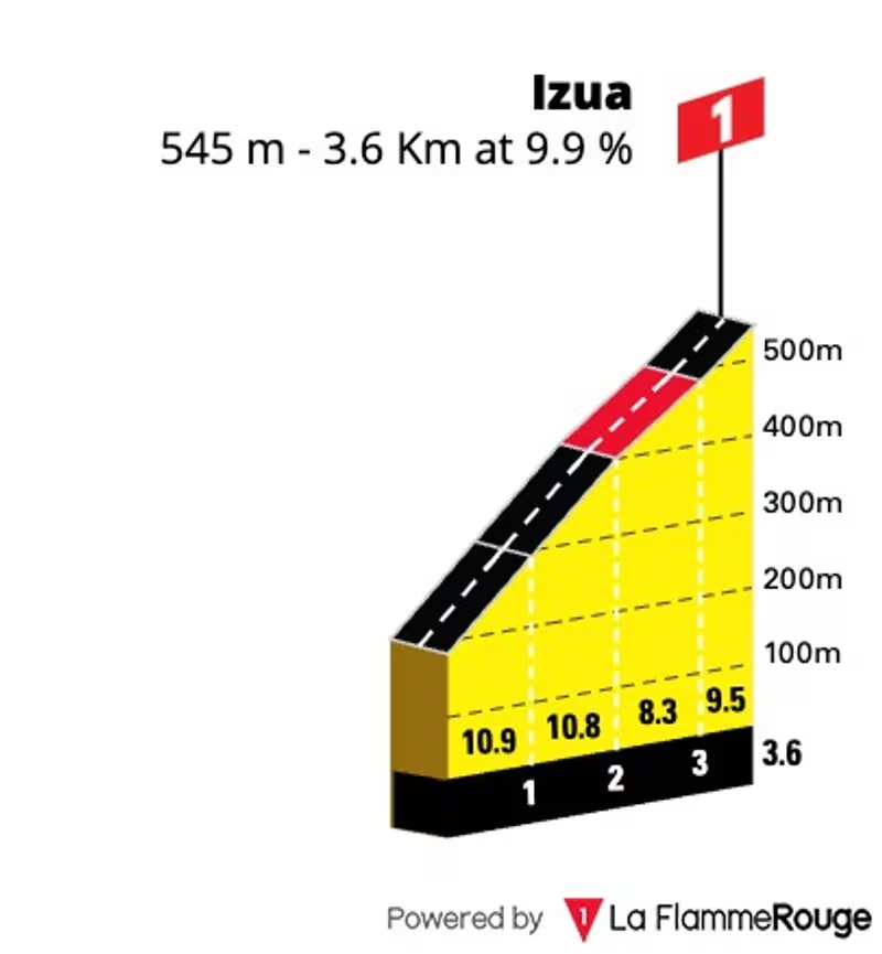 Selon moi, le money time débutera au kilomètre 125 avec l'ascension de Trabakua. Pas la bosse la plus compliquée, mais 1,4 derniers kilomètres à près de 9 % qui peuvent motiver un favoris à sortir du groupe.