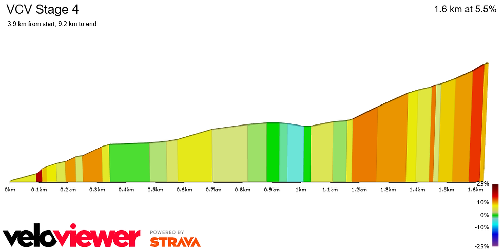Et c'est juste après qu'ils enchaîneront avec le dernier passage difficile non répertorié. Une bosse de 1,6 kilomètres à 5,5 % de pente moyenne, avec 500 derniers mètres à près de 9 % de pente moyenne.