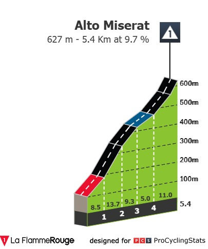 S'en suivra le début de l'Alto Miserat au kilomètre 47.